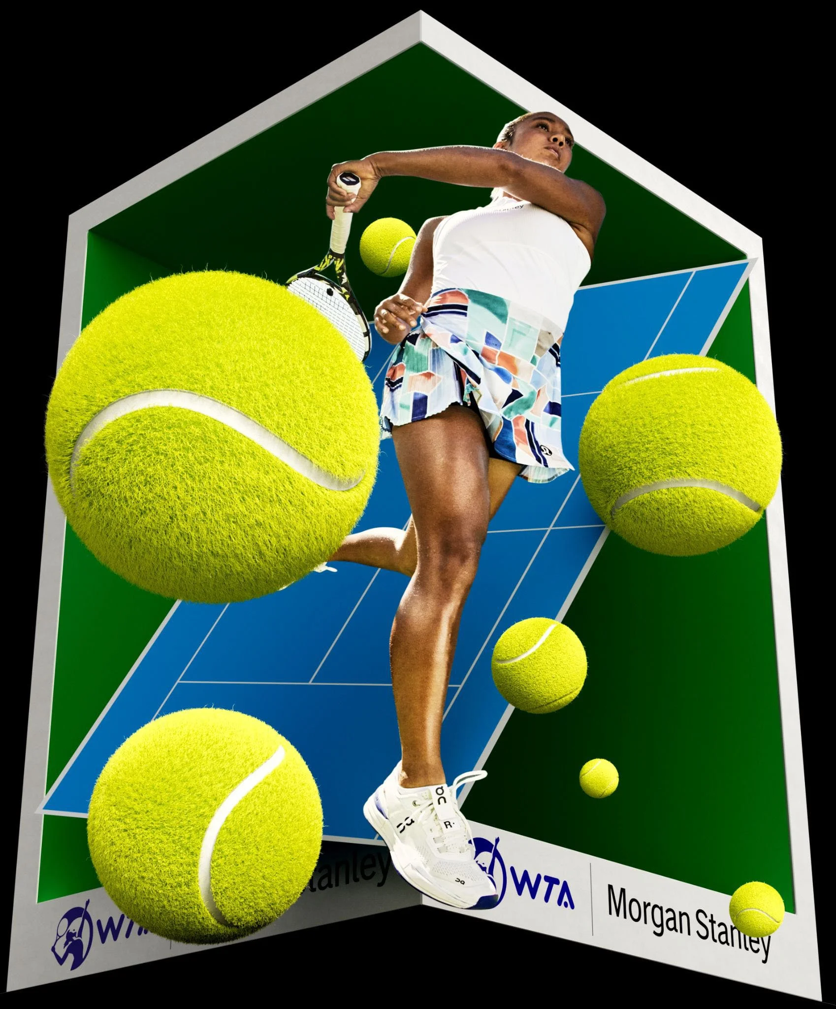We emphasized several design elements, including an explosive hit and the face of the campaign, Leylah Fernandez, to reinforce Morgan Stanley's commitment to expanding access and driving equity in sports.